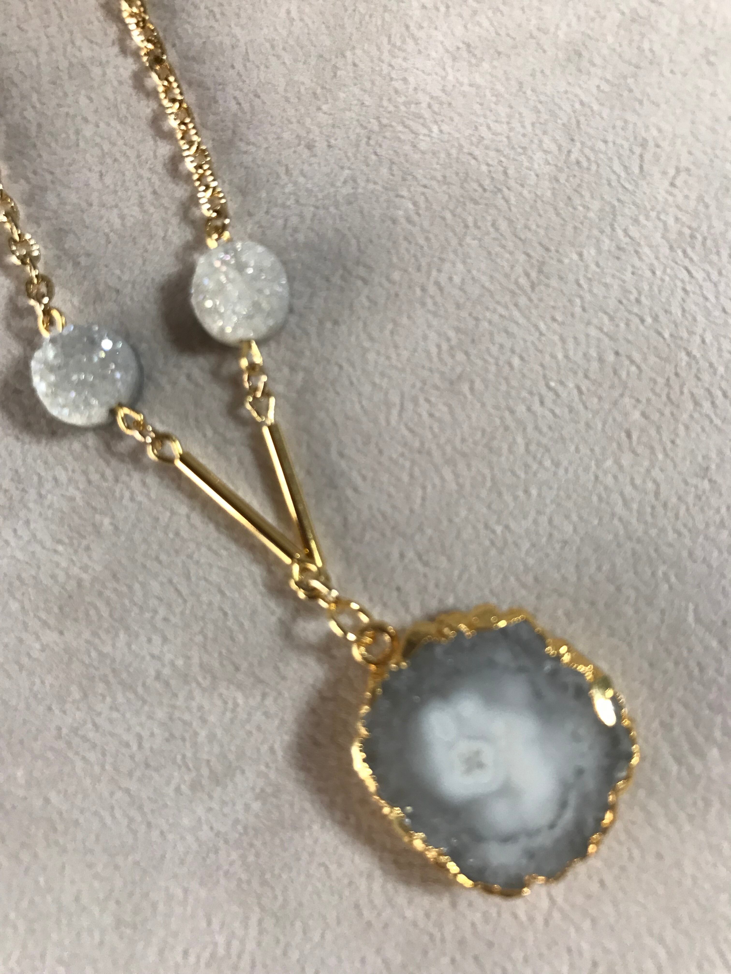 天然石グレードゥルージーのペンダントは、おしゃれと贅沢を兼ね備えた逸品です。特別な日の演出にも華を添え、常にあなたを輝かせてくれることでしょう。大切な人へのプレゼントにもぴったりです。ぜひ一度お試しください。